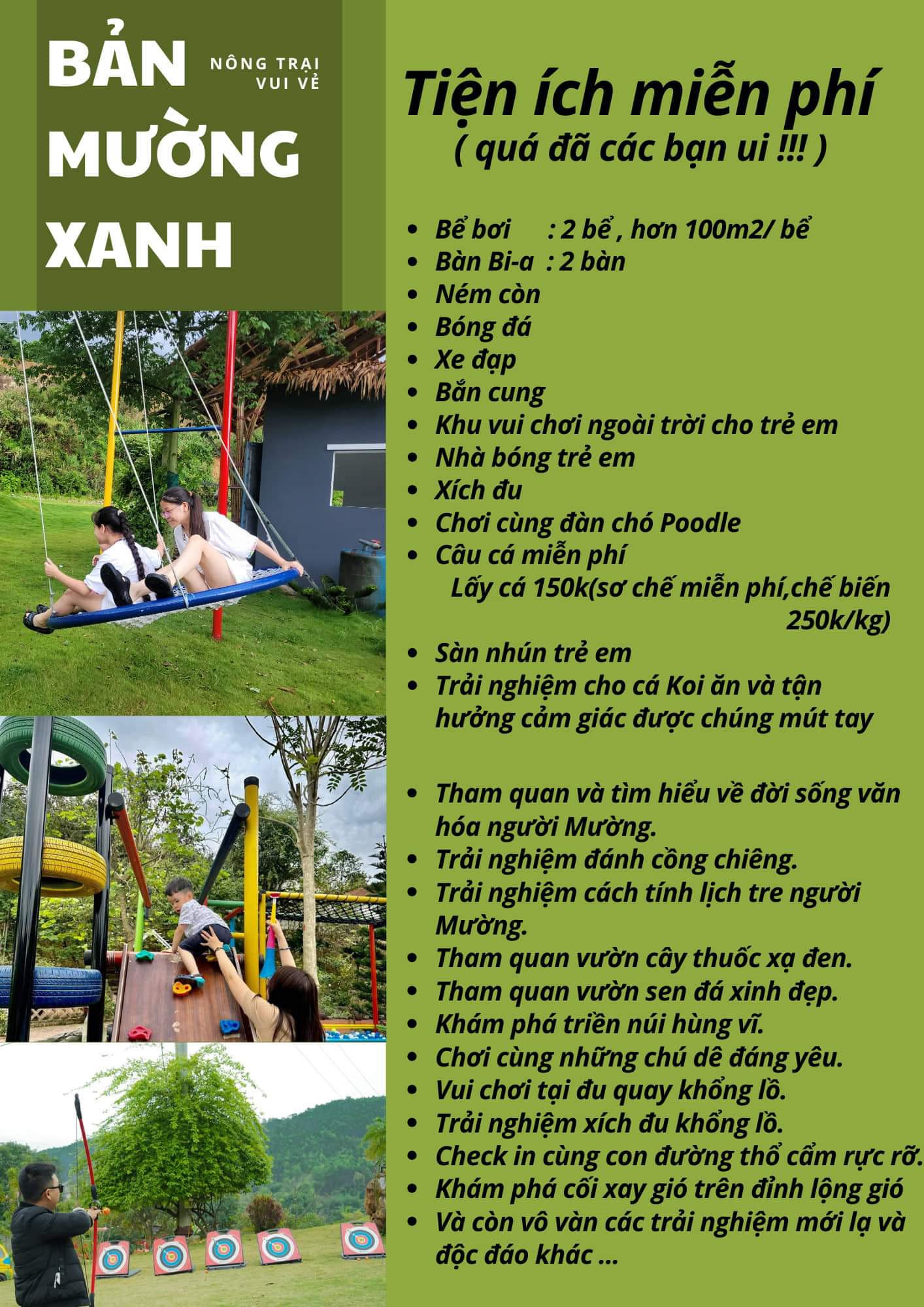 Bản Mường Xanh là khu nghỉ dưỡng tích hợp đa dịch vụ, tiện ích bao tham quan, nghỉ dưỡng, trải nghiệm.